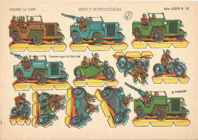 Vaya sorpresa, Manuel. Tienes de todo y para todos. Yo mismo en mi infancia jugué con recortables y los bélicos eran mis preferidos. También, y aunque suene insólito, mi hija pequeña llegó a jugar con ellos -se los dieron en el colegio- y de esto no hará más de dos o tres años. Los trabajos manuales siguen teniendo mayor valor añadido que cualquier juego por tablet o móvil.